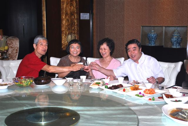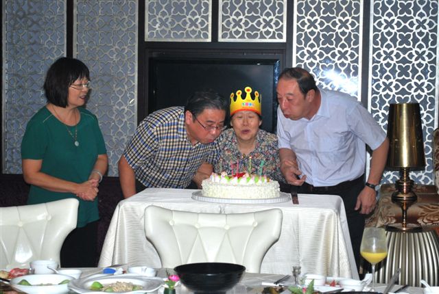 “今天,来这里聚会的主要是石板房二条十五号的老街坊,大家是彼此见证着长大的,经过了风风雨雨,坎坎坷坷,现在,大家都这么健康,家庭都这么幸福,是一件非常值得欣慰的事。特别是今天有大妈(指我们的奶奶刘希昭)的血脉,就是大妈孙子当中的两个(孙奚和孙军)又加入到我们团队,也是石板房二条十五号的根基……我们每个人都对那里有着千丝万缕的情结。今天,大家的团聚是一种难得的缘分,是一种深厚的情分。可为什么要选在今天呢?一个是快到中秋节了,中秋节就是一个大团聚的节日,再一个是我们中间的英厚和功厚(英叔、功叔),迎来了他们的60周岁生日……”